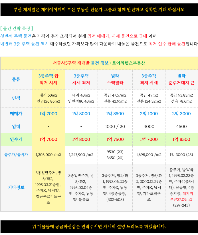 부산 재개발에 대해 궁금하신 점은 방문 또는 연락 주시면 자세히 설명 드리겠습니다.
