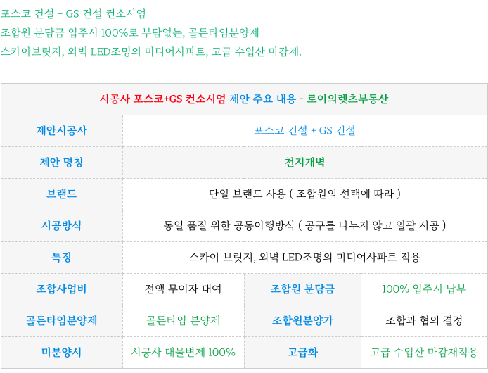 포스코 + GS 컨소시엄으로 3개동을 연결하는 스카이 브릿지와