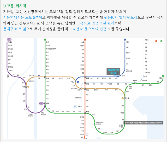 이곳에서 충렬대로를 따라 동래 및 해운대로의 접근성 역시 좋습니다.