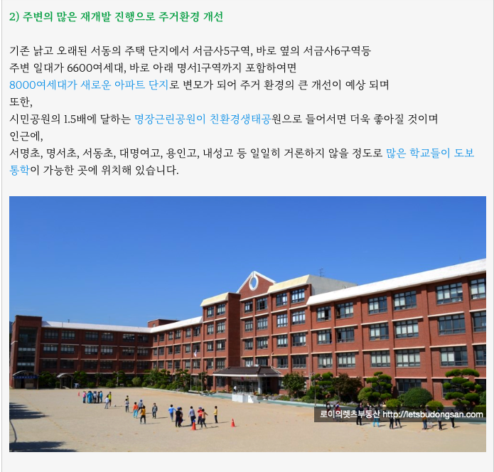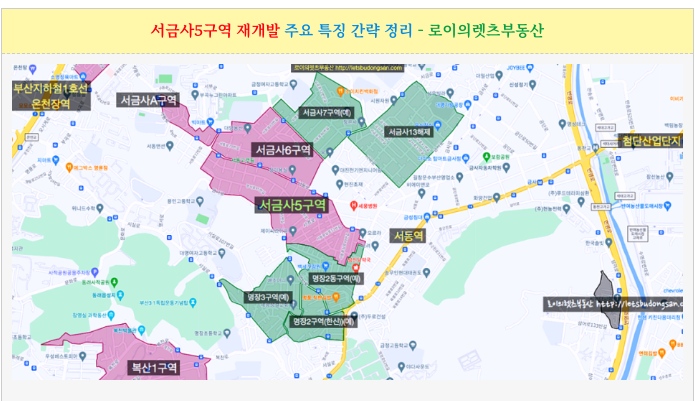 서금사5구역 입지를 바탕으로 한 주요 특징을 다시 한번 간략 정리하였습니다.