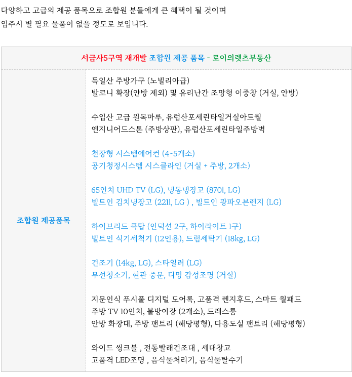 서금사5구역 조합원 특별 제공 품목 소개 드립니다.