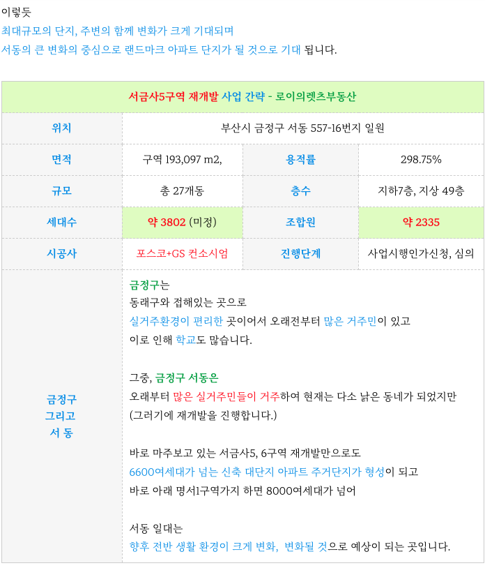 착착 진행되고 있는 부산재개발 서금사5구역 진행 소식 & 새로 접수된 급매 주택 매물 소개해 드리겠습니다.