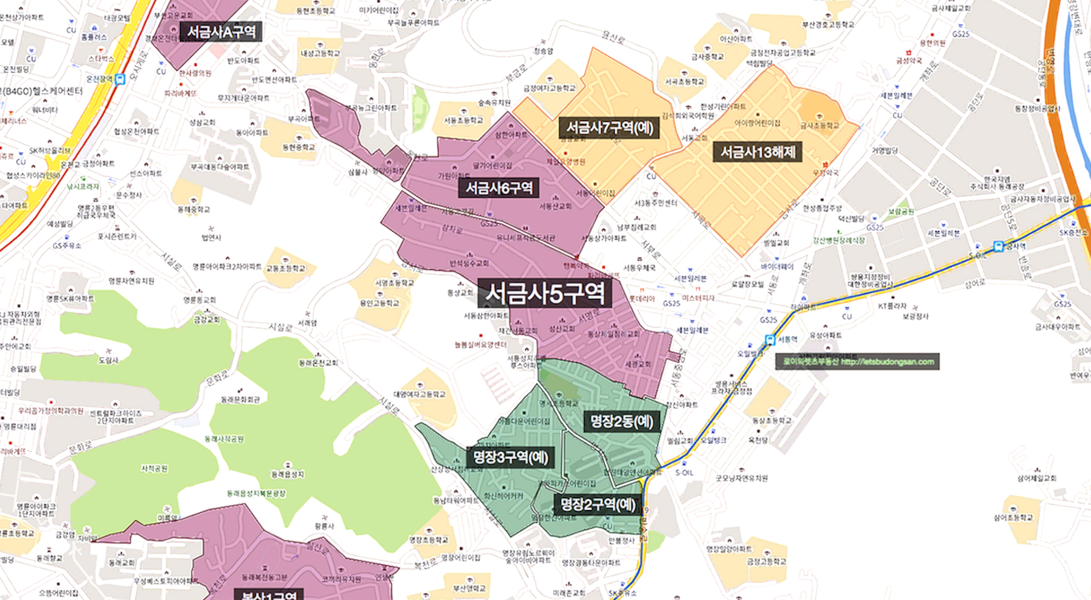 서금사6구역이 바로 앞으로 아래 아래로는 명서1구역까지 하면