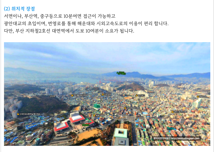 부산 중심 서면과 부산의 관문 부산역 15분여 정도면 이동이 가능하교