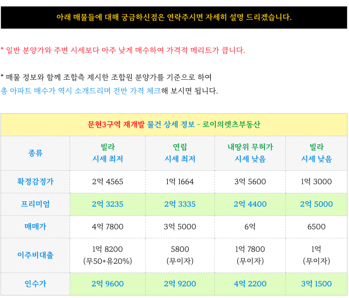 문현3구역 재개발 시세 최저 매물들 소개하여 드립니다.