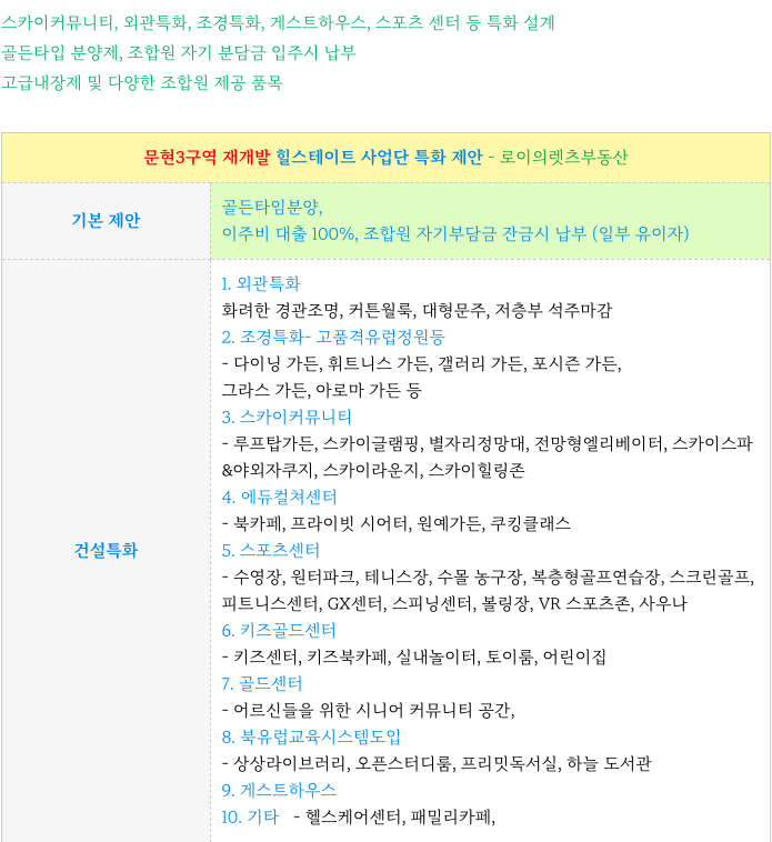 단지 특화 제안 및 고급화 제안 역시 기대가 되어 고급 프리미엄 단지로의 기대가 됩니다.