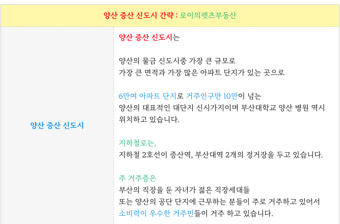 매물이 위치한 양산 증산 신도시에 대해 간략 설명 드리겠습니다.