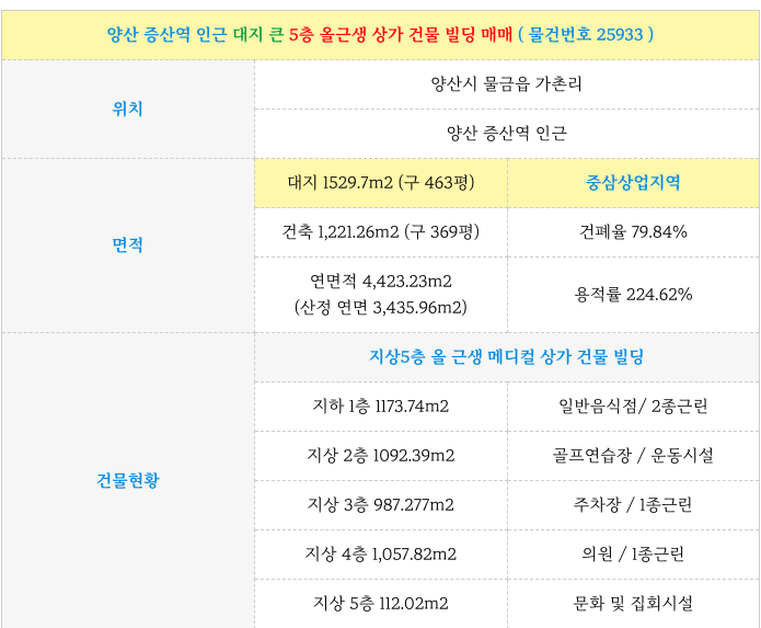 양산 증산역 인근 대지 큰 5층 올근생 상가 건물 빌딩 매매 믈건 제원 정리 해드립니다.