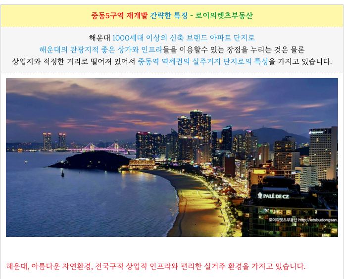 중동5구역 재개발이 위치한 해운대에 간략 특징을 추가 설명드리겠습니다.