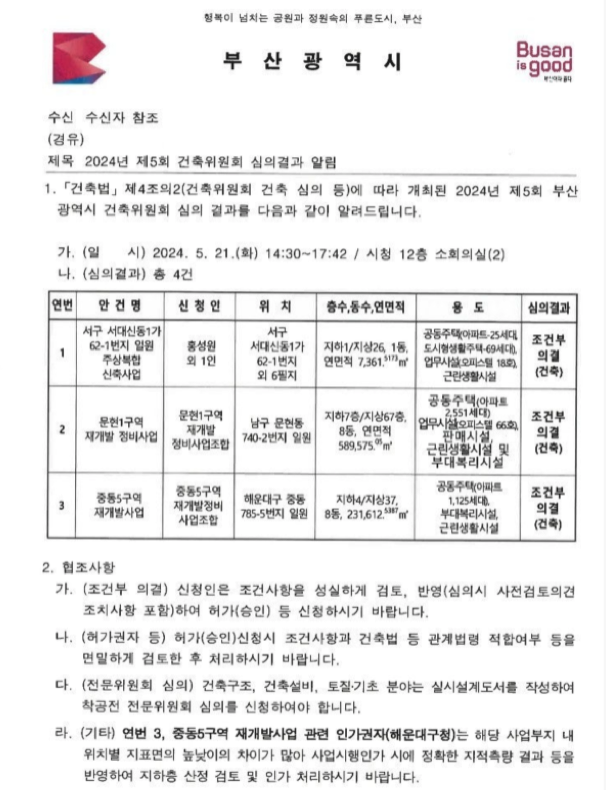 중동5구역 재개발은 2달여 만에 건축심의가 통과 되었습니다.