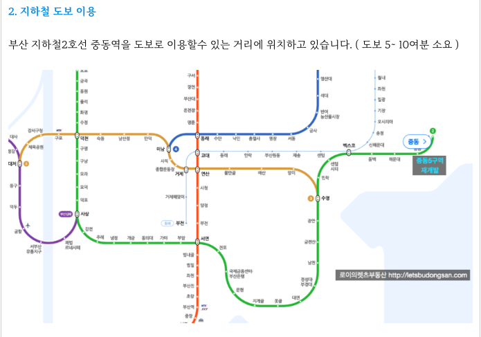 부산 지하철 2호선 중동역 도보 5~10여분의 준역세권 위치에
