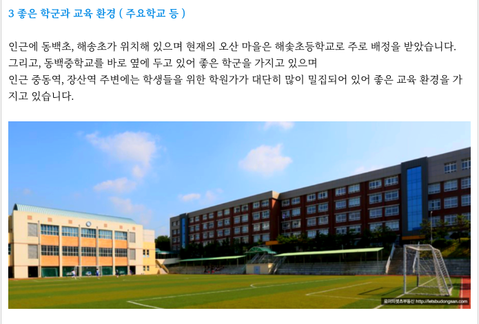 가까이 해송초등학교가 있고 바로 위로는 동백중학교가 있어 좋으며