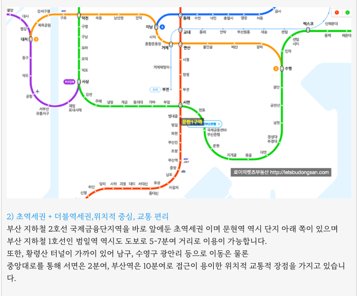 이렇듯 부산의 최고 핵심 지하철 2개 호선을 모두 이용할수 있는 큰 장점을 가지고 있습니다.