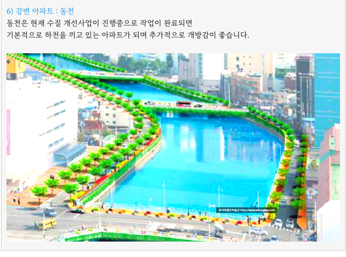 현재 수질개선작업중인 동천을 곁에 끼고 있어
