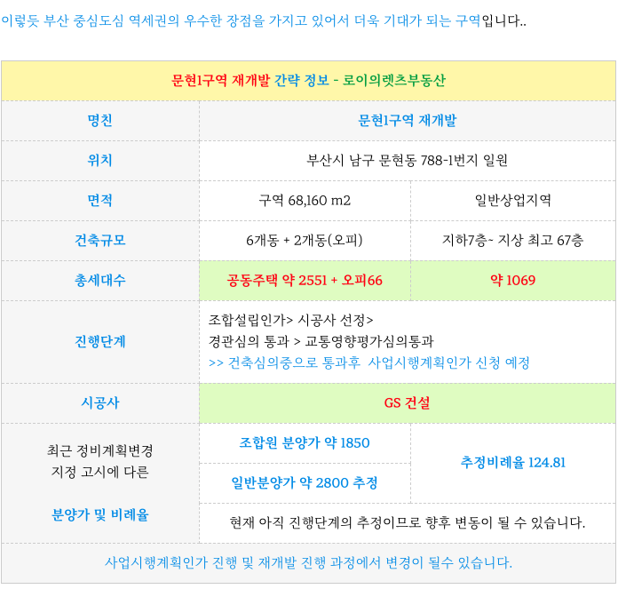 문현1구역 현 최저 매물 그리고 최근 건축심의 통과 소식 정리 소개해 드리겠습니다.