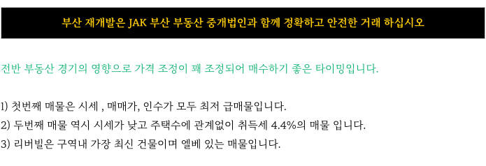부산 전역 재개발에 대해 궁금하신 사항은 방문 또는 연락주시면 자세히 설명드리겠습니다.