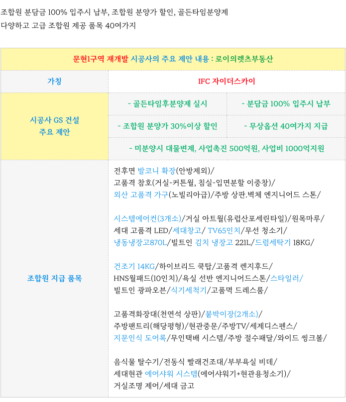 문현1구역 재개발 시공사 GS 건설의 주요 제안 부분 역시 정리 드립니다.