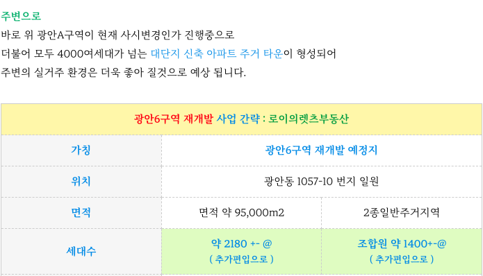 (더블역세권) 광안6구역 재개발 : 구역지정신청 소식 & 소액 매물 2500부터 인수