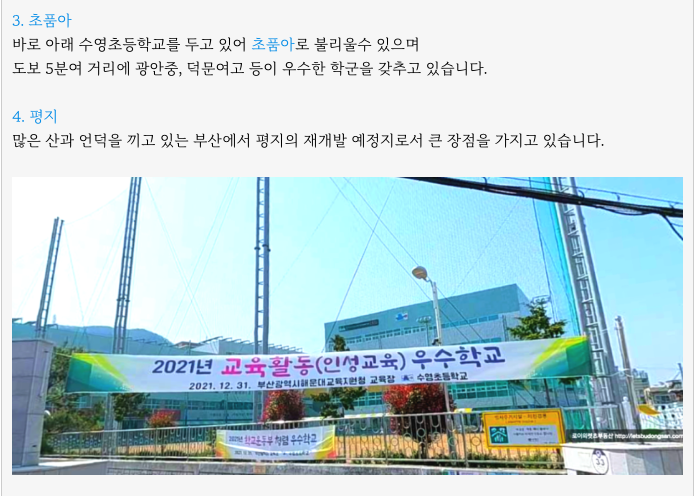 - 교통적으로 우수, 더블역세권, 수영구, 평지, 초품아,