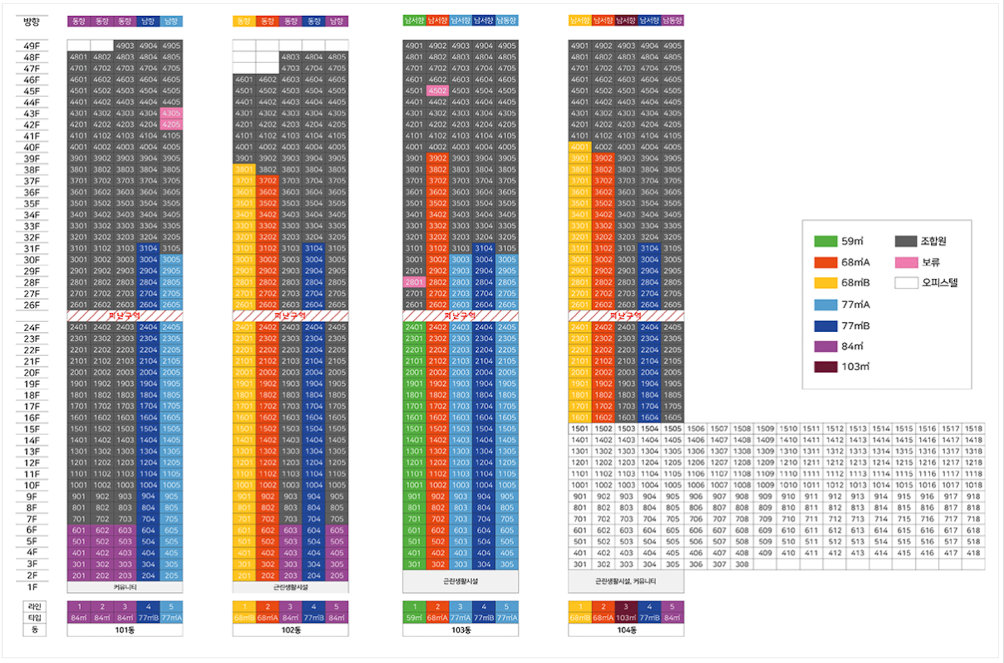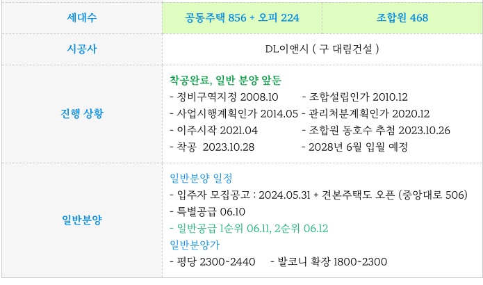 일반분양가는 10~15층기준이며 84타입은 일반분양 저층만 배정되어 4~6층 기준으로