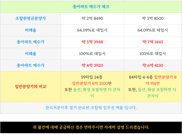 조합원 분양가와 상당한 차이가 발생하고 있습니다