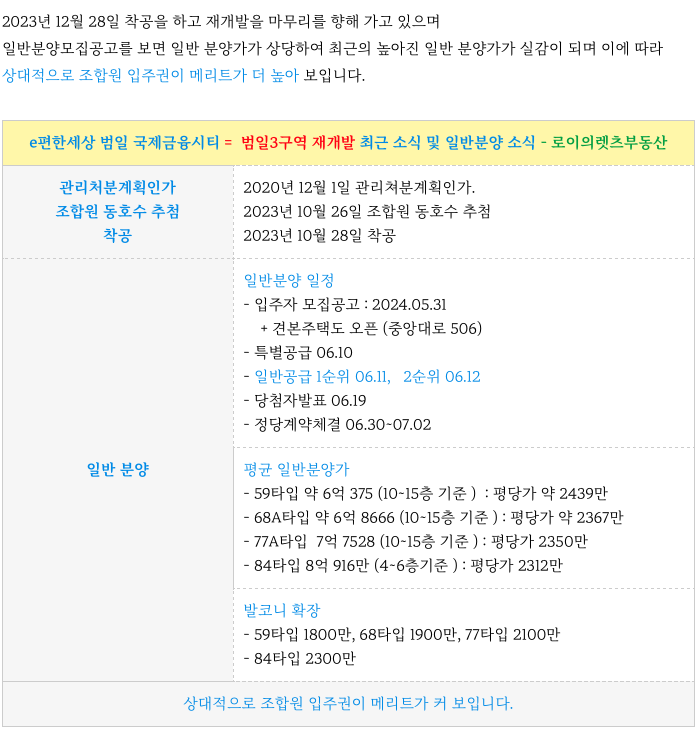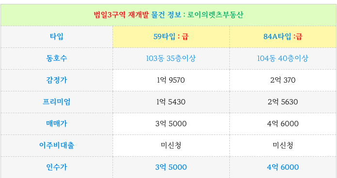 범일3구역 재개발 일반 분양가와 비교하여 조합원 입주권 매물을 소개 드리겠습니다.