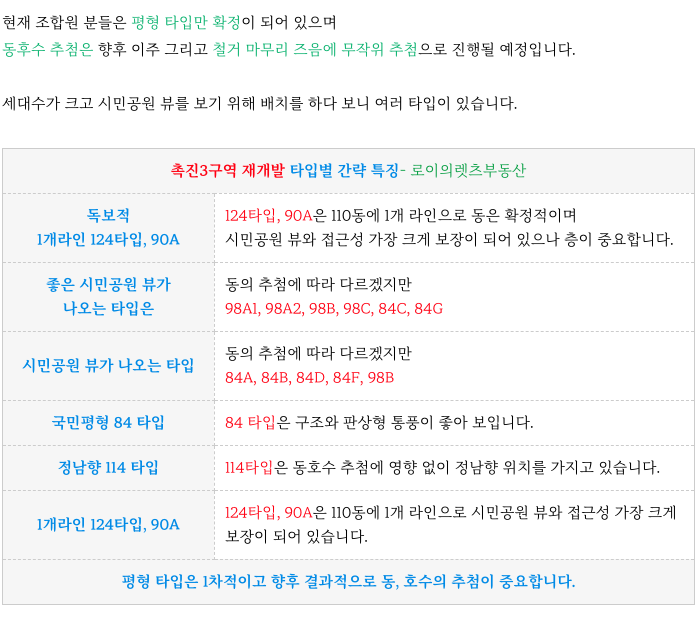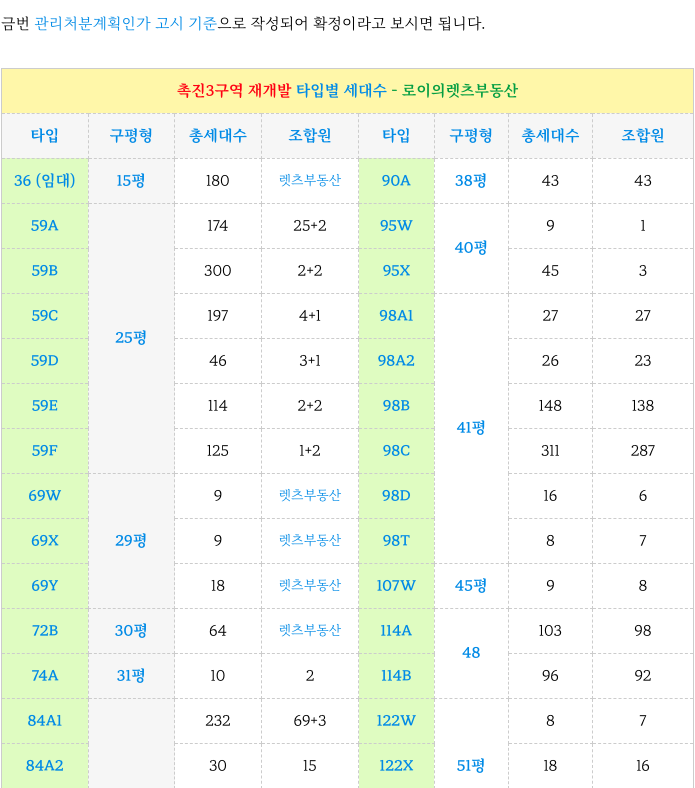 촉진3구역 재개발 : 각 타입 매물 그리고 관처고시, 이후 일정