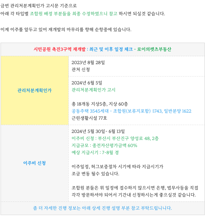 시민공원 촉진3구역 재개발 일자별 주요 진행과 향후 일정 정리등 추가 정보는 아래 페이지를 참고 부탁드립니다.
