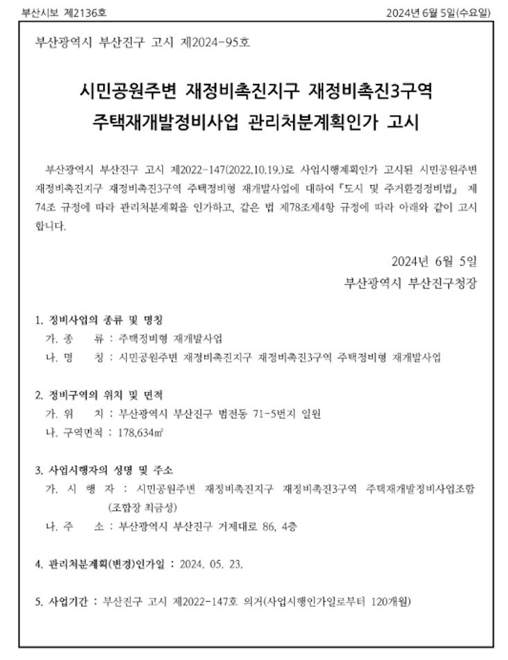 촉진3구역 재개발은 2024년 6월 5일 관처고시가 되었습니다.
