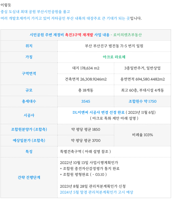 안녕하세요 로이의렛츠부동산 ( JAK 제이에이케이 부산 ) 입니다. 시민공원 촉진3구역 현부동산 경기에...