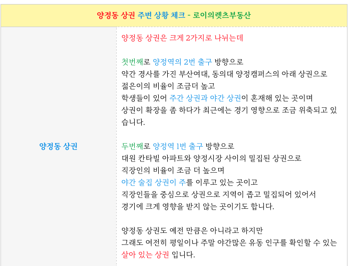양정역 주변 상권에 대해 간략히 소개 먼저 드리겠습니다.