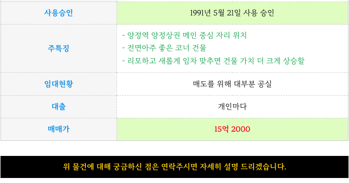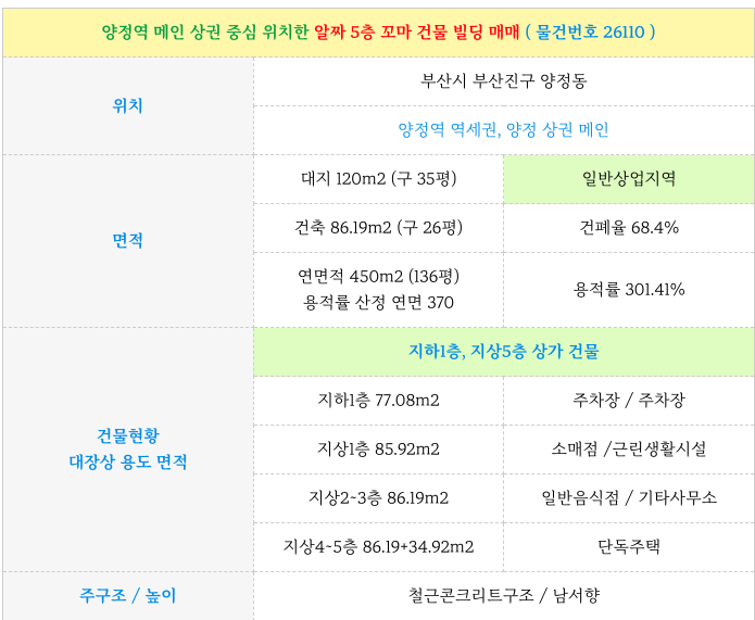 양정역 메인 상권 중심에 위치한 알짜 5층 꼬마 건물 빌딩 매물 제원 정리해 드리겠습니다.