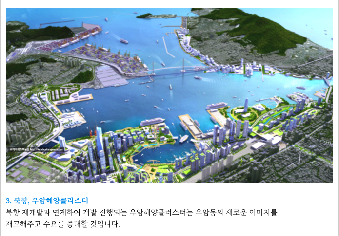 북항재개발 2단계 및 그연장 선상인 우암해양클러스터가 바로 앞에 위치해 있고