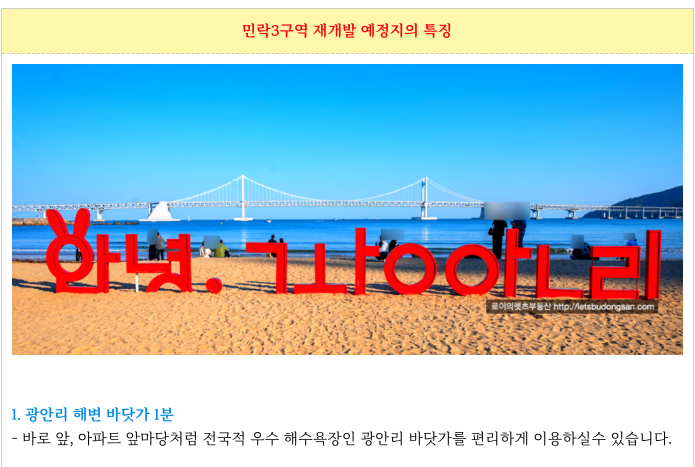 민락3구역 재개발은 광안리 해변가 바로 앞에 위치하고 있어서