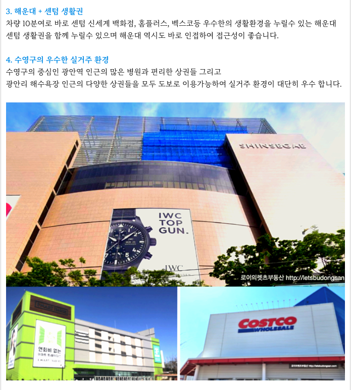 센텀의 신세계백화점, 롯데백화점, 벡스코, 영화의 전당등 센텀 상권 역시 이용가능하여