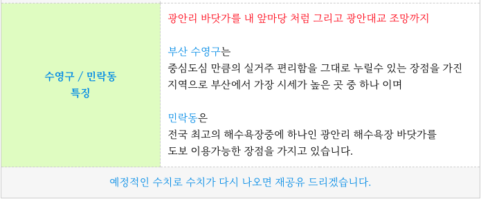 (광안리 바닷가1분) 민락3구역 재개발(예) : 진행 소식 & 소액 매물 (1.5인수부터~)