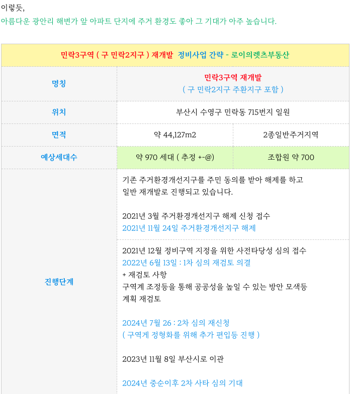 민락3구역 재개발의 추가적인 정보는 아래 페이지를 참고 부탁드립니다.