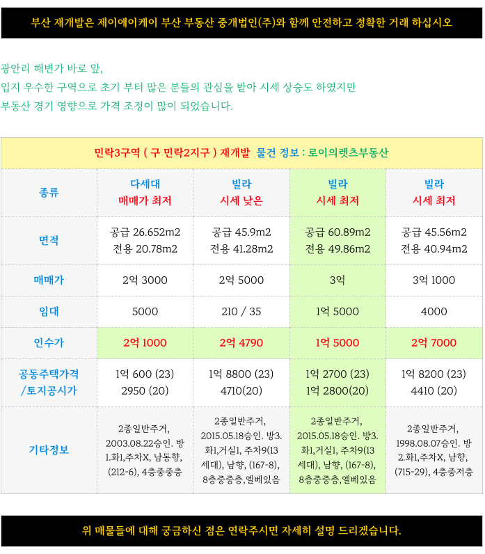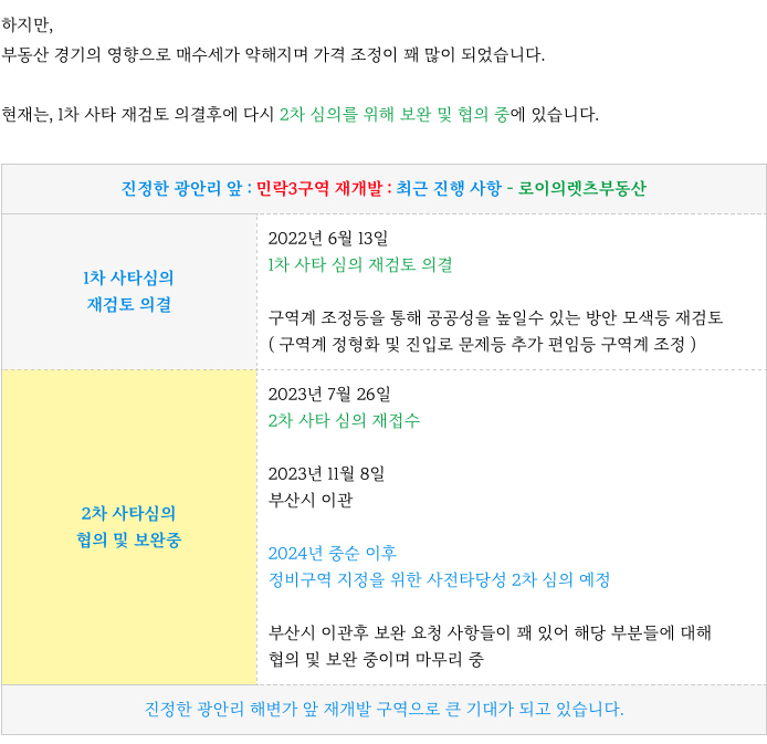 민락3구역 상대적 소액 매물과 최근 소식과 일정 소개해 드리겠습니다.