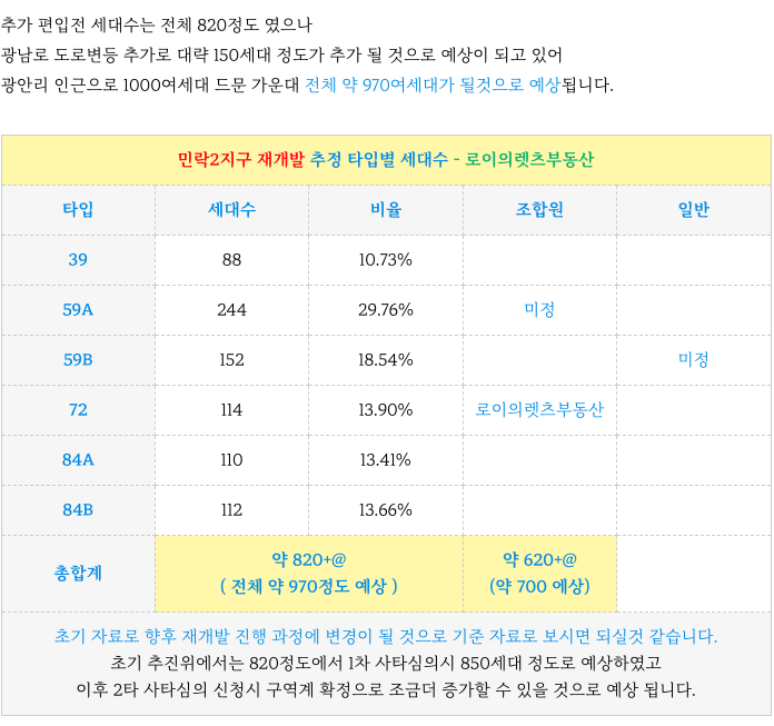 민락3구역 재개발 현재 추정 타입별 세대수 소개해 드립니다.