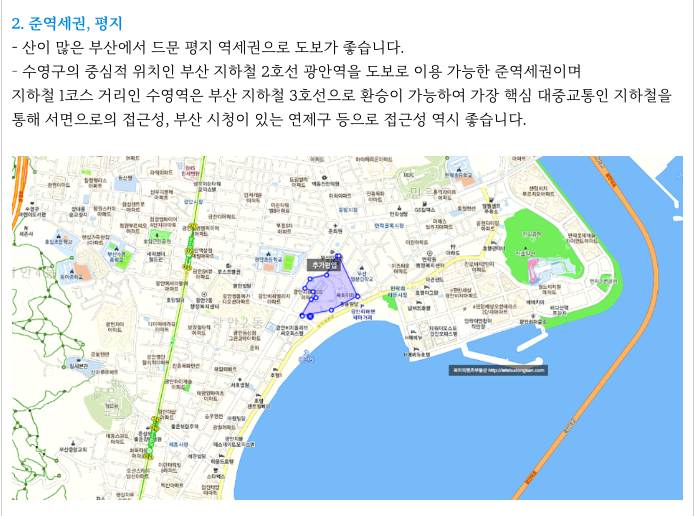 광안리의 많은 병원과 다양한 상가들의 이용이 편리하며