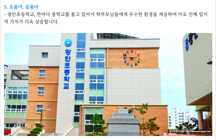 광안초등학교와 한바다중학교에 있어 자녀들의 통학여건도 좋으며