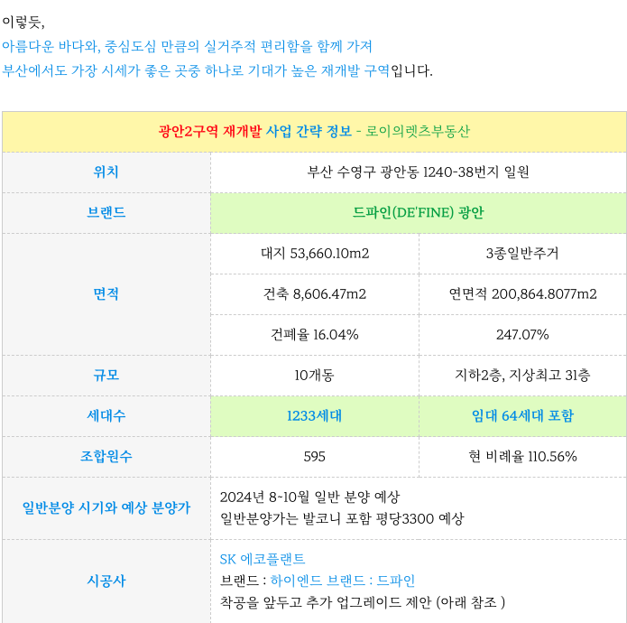 수영구 광안2구역 최근 소식과 조합원 입주권 매물 소개해 드리겠습니다.