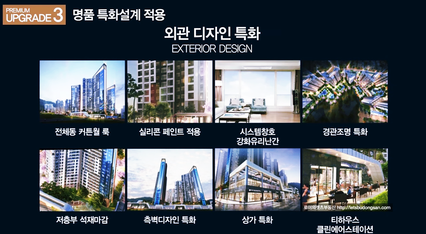 커튼월룩을 적용한 화려한 외관과 북카페·실내골프연습장 등을 포함한 커뮤니티시설을 제공하며