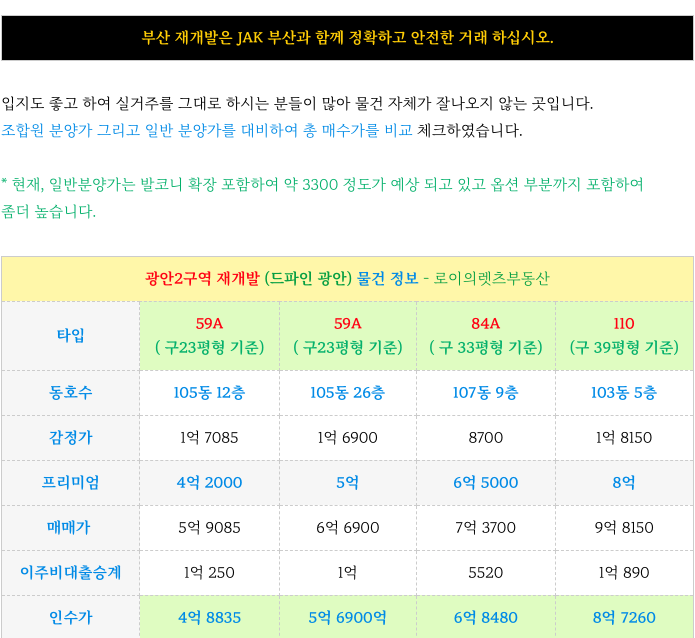 광안2구역 조합원 입주권 매물 정리 소개하여 드리겠습니다.