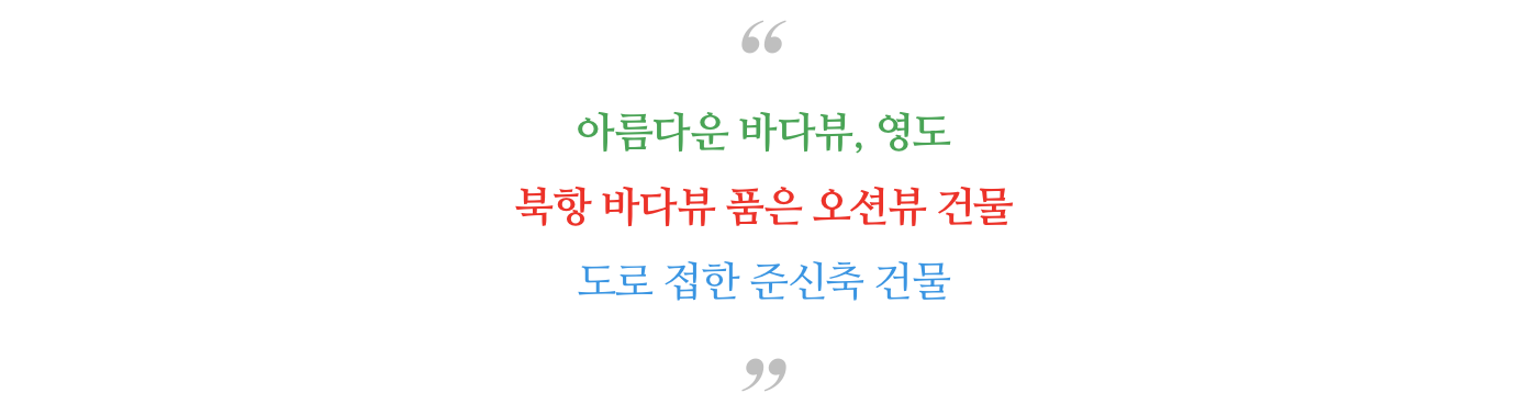 | [급매] 바다 조망 올근생 - 부산 영도 상가 건물 빌딩 매매 (준신축) (3) | 2024.09.18 |