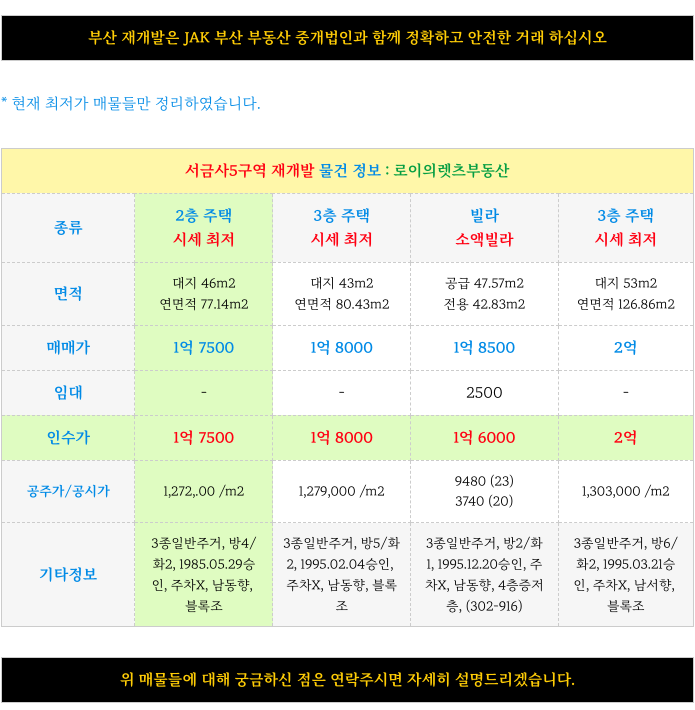 서금사5구역 재개발 현 시장 최저 매물 입니다.