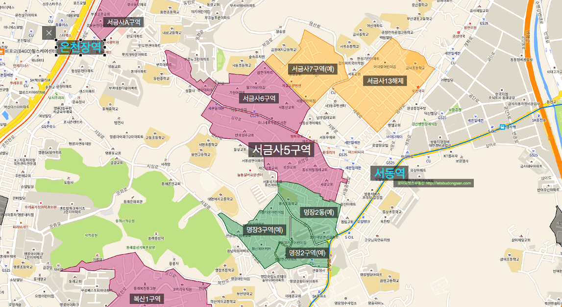 바로 앞 서금사6구역이 있고 아래로는 명서1구역까지 있어