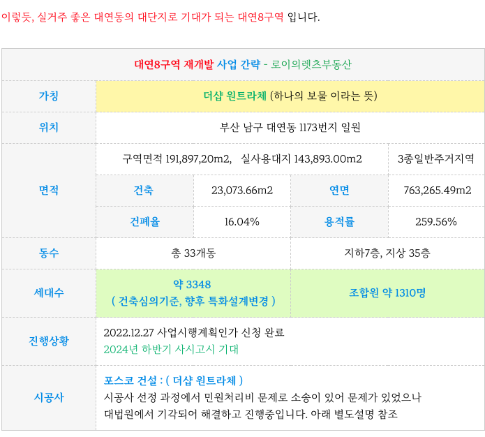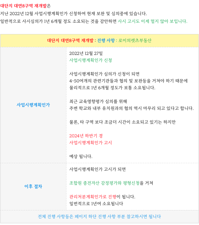 대단지 대연8구역 일자별 주요 진행 그리고 향후 일정 소개등 추가 정보는 아래 페이지를 참고 부탁드립니다.