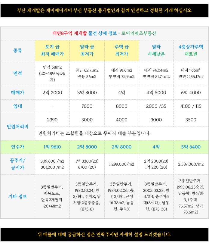 대연8구역 재개발 급매 소액 토지 매물 등 소개 드립니다.
