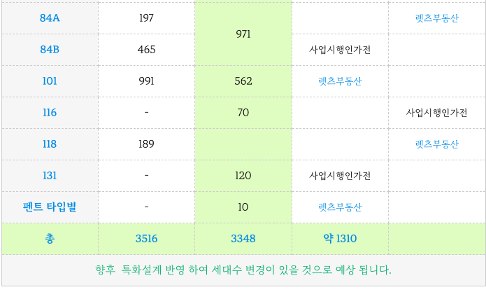 향후, 특화 설계등을 반영한 부분으로 시공사와 협의하여 세대수 조정이 있을 것으로 보입니다.